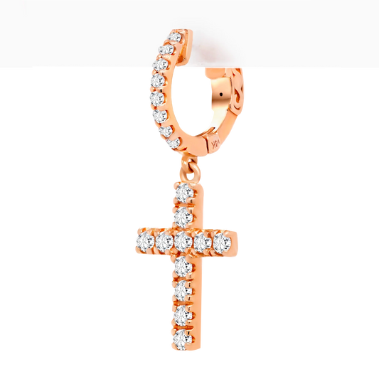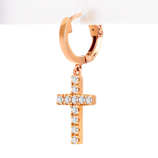 14k Gold Cross Charm Hoop Earrings with Lab-Grown Diamonds