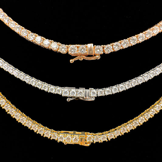 14k Gold 3-Prong Lab-Grown Diamond Tennis Necklace – 16"