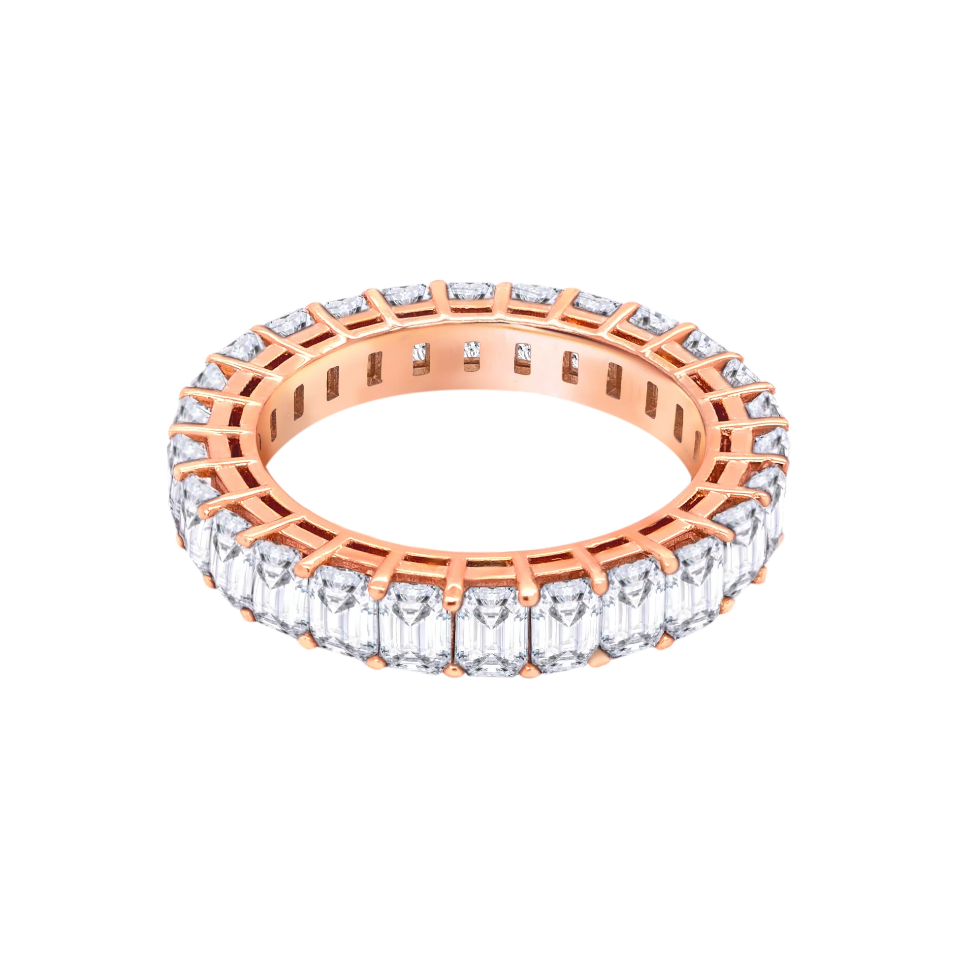A ring that speaks in symmetry and sparkle — the Eternal Emerald Eternity Band features a continuous loop of emerald-cut lab-grown diamonds, precisely set in a full eternity design. Crafted in solid 14k gold, this ring delivers clean lines and bold brilliance for a look that feels both timeless and tailored.