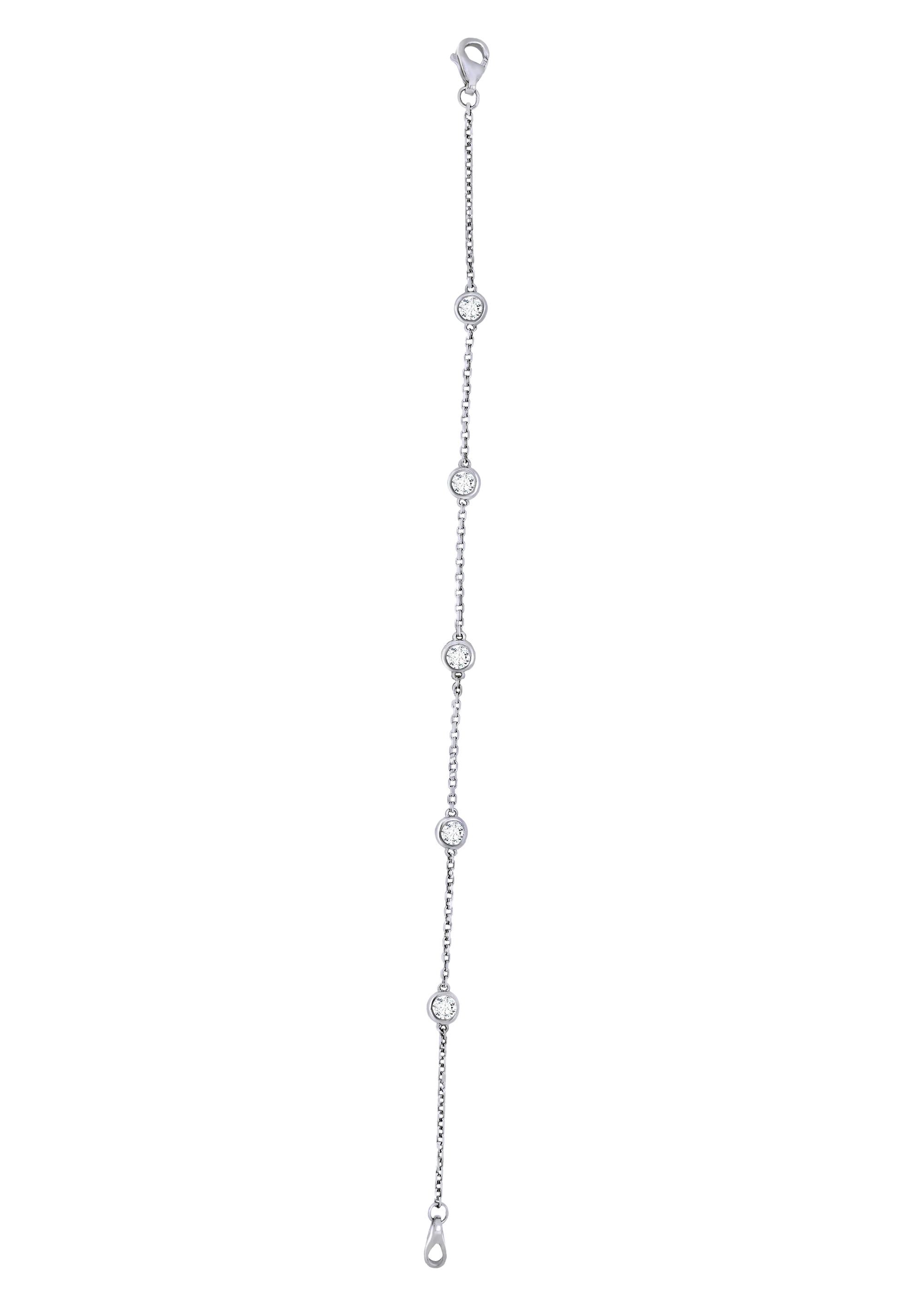 A timeless beauty, this 14k gold lab-grown diamond bracelet is a classic “diamond by the yard” design. Each diamond is bezel-set and elegantly spaced along a fine chain, offering a delicate sparkle with every move. Ideal for layering or wearing solo, this bracelet is available in rose, white, or yellow gold.
